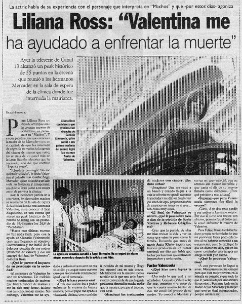 Liliana Ross: "Valentina me ha ayudado a enfrentar la muerte" [entrevistas] [artículo] : Paula Hernández.