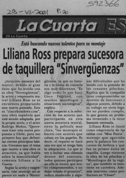 Liliana Ross prepara sucesora de taquillera "Sinvergüenzas" [artículo].