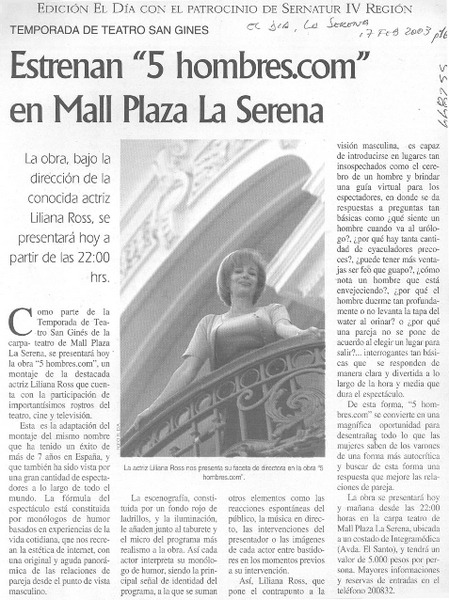 Estrenan "5 hombres.com" en Mall Plaza La Serena. [artículo]
