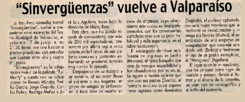 El Impacto teatral del año 2000 y 2001 "Sinvergüenzas" en Melipilla [artículo].