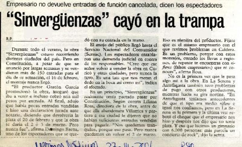 "Sinvergüenzas" cayó en la trampa [artículo] R.P.