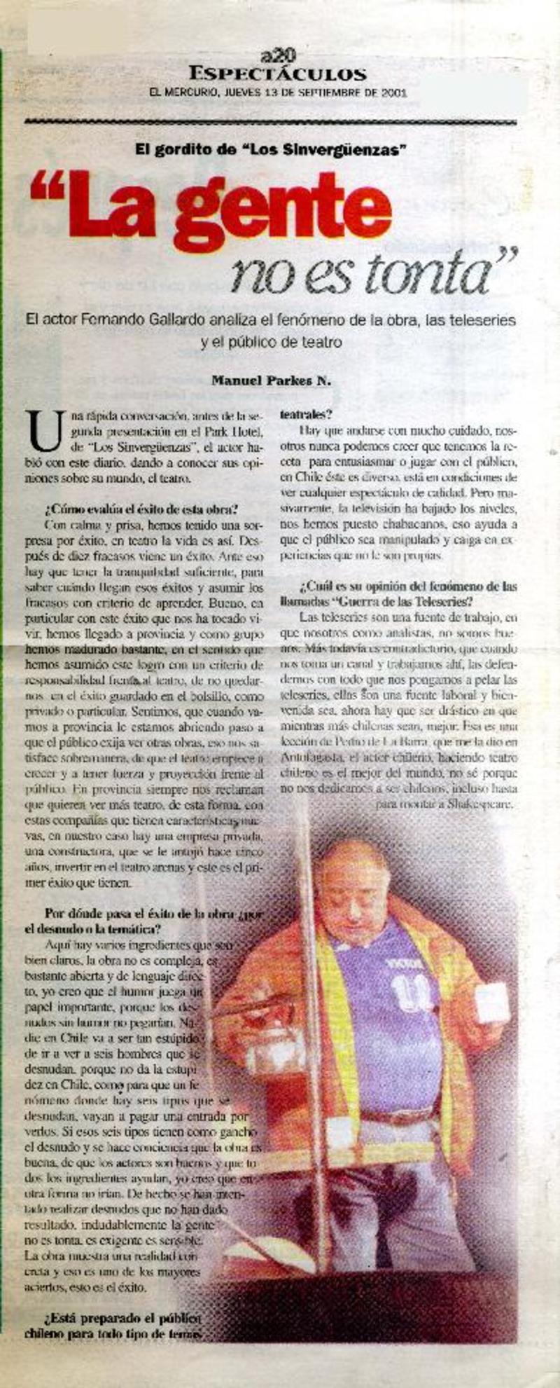 "La gente no es tonta" : [entrevistas] [artículo] Manuel Parkes N.