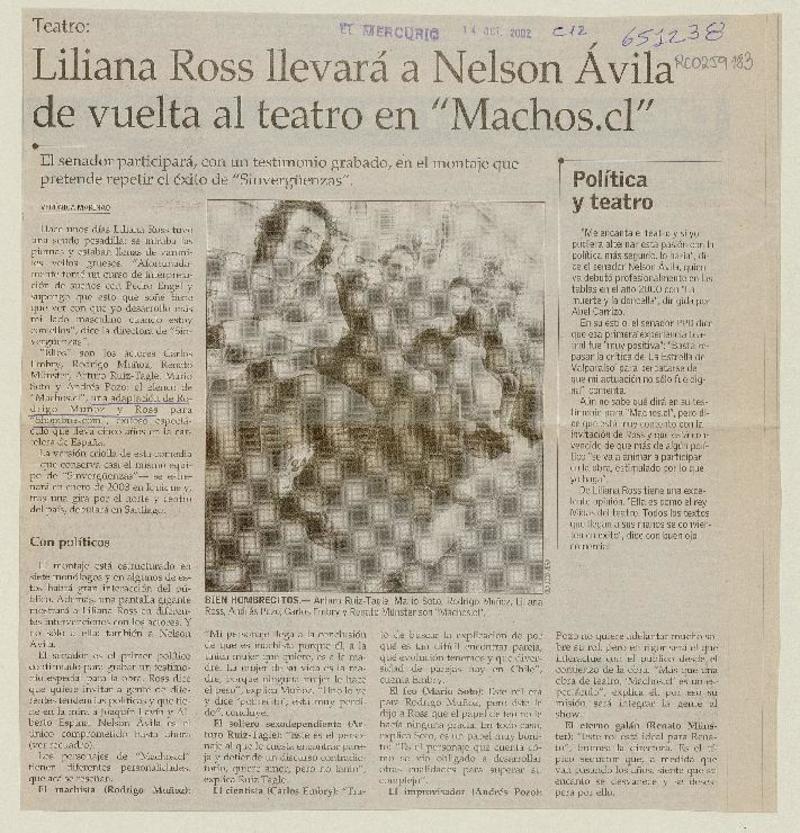 Liliana Ross llevará a Nelson Ávila de vuelta al teatro en "Machos.cl" [artículo] Verónica Marinao