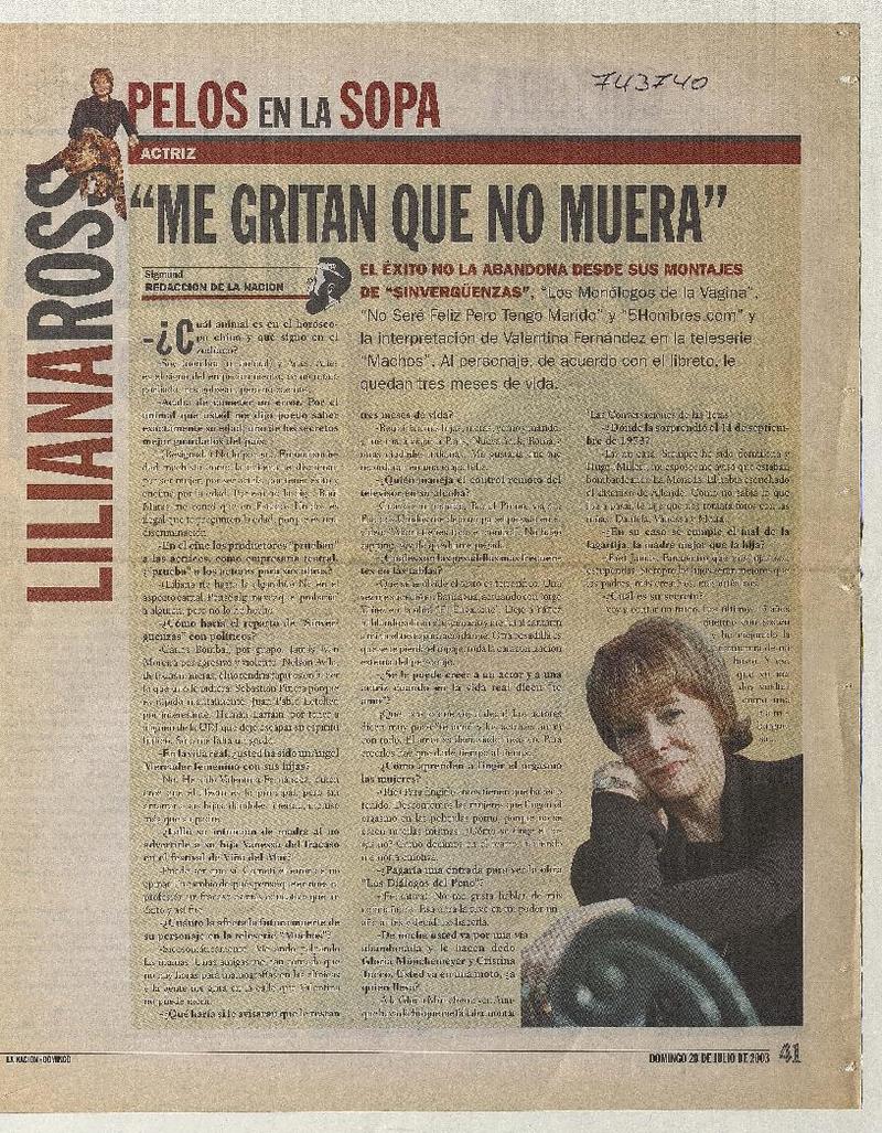 Liliana Ross: "La tele sólo le da cobertura a la estupidez" (entrevistas) [artículo]Karen Punaro M.