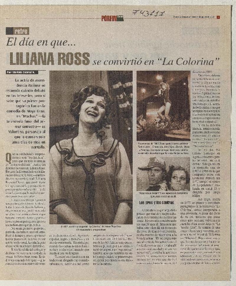 El día en que, Liliana Ross se convirtió en "La Colorina" [artículo] Mariela Suárez V.