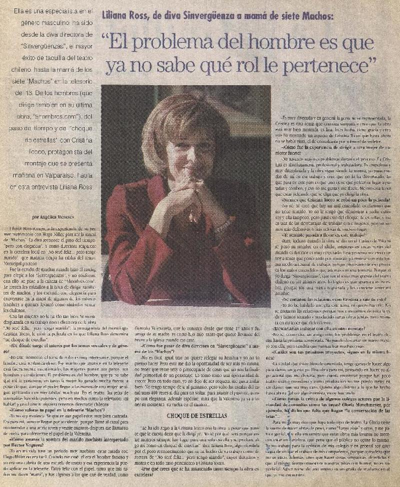 Liliana Ross ahora dirige obra sólo con mujeres [artículo] Susana Freire.