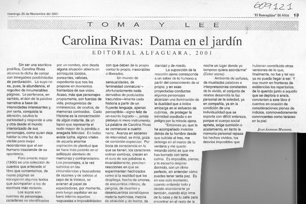 Carolina Rivas, Dama en el jardín [artículo] Juan Antonio Massone