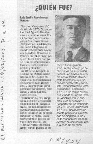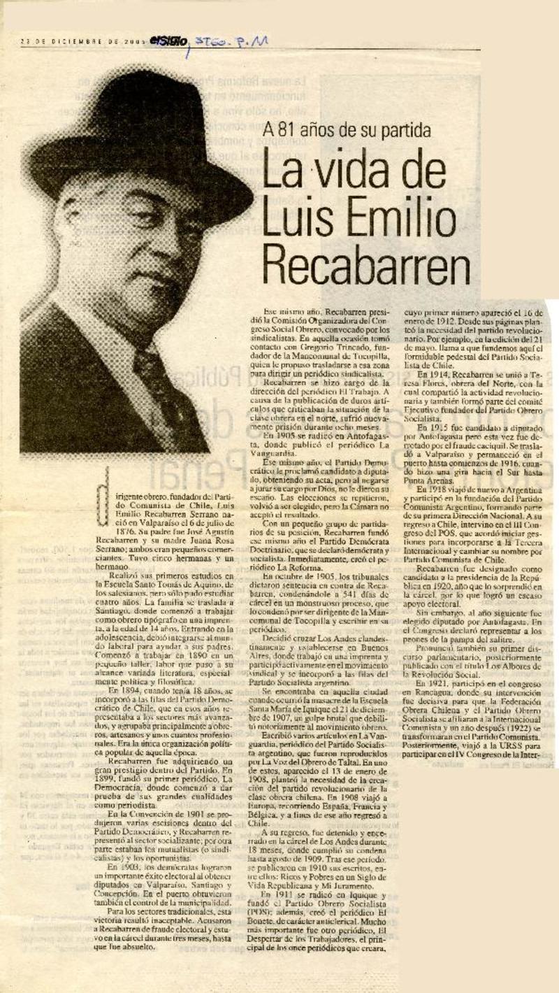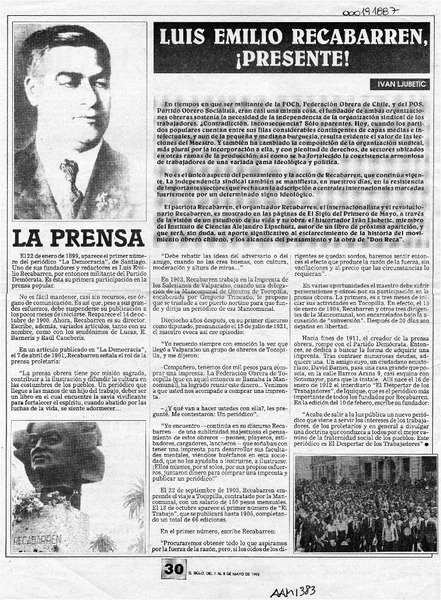 Luis Emilio Recabarren, imagen presente [artículo] Sergio Martínez.