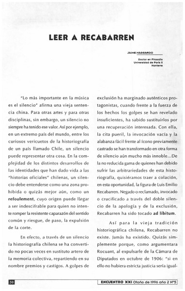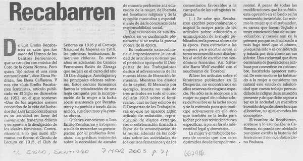 Recabarren al trasluz [artículo] Antonio J. Salgado.