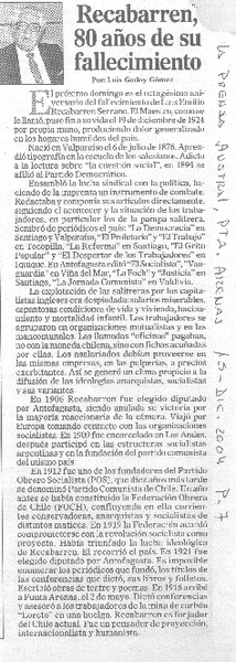 Recabarren 80 años de su fallecimiento [artículo] Luis Godoy Gómez
