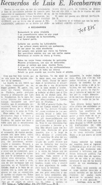 Su nombre era Recabarren [artículo] Angel Pizarro