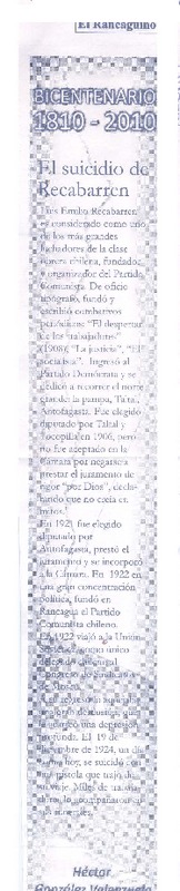 El suicidio de Recabarren [artículo] Héctor González Valenzuela.