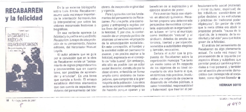 Autores chilenos - Recabarren, Luis Emilio - Loyola, Manuel - Felicidad y la política --