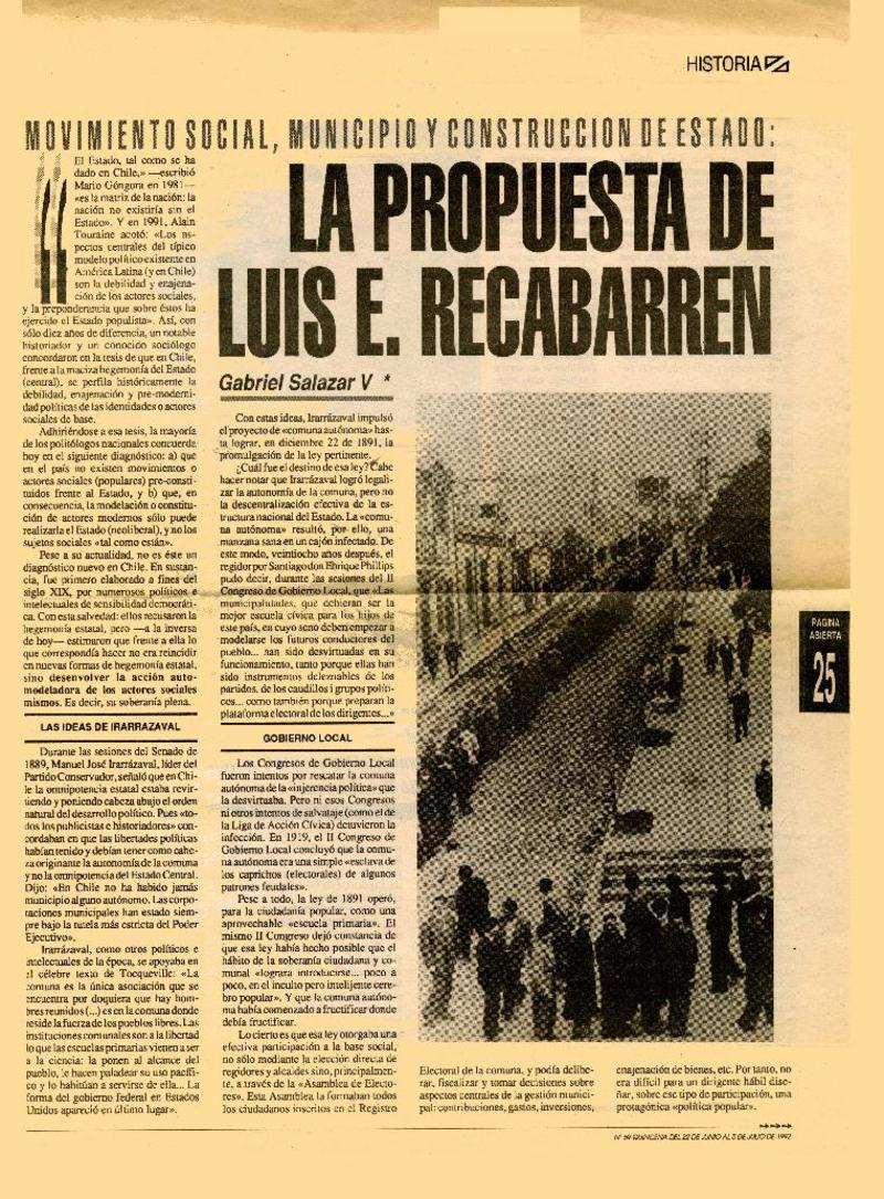 La propuesta de Luis E. Recabarren [artículo] Gabriel Salazar V.