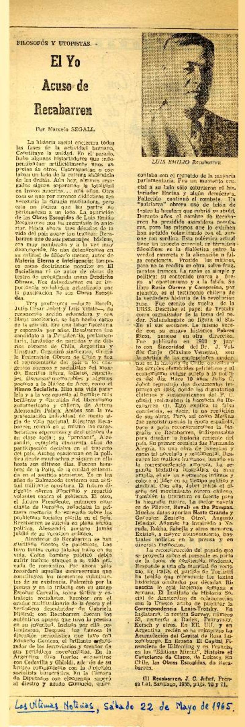 El yo acuso de Recabarren [artículo] Marcelo Segall.