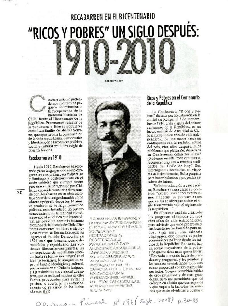 La Presencia y aporte cultural de Recabarren. [artículo]