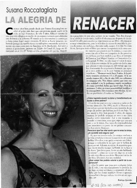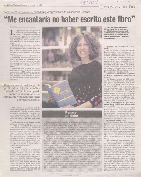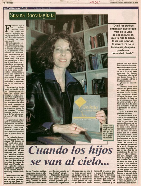 Autoras chilenas - Roccatagliata, Susana - Hijo no puede morir - Entrevista - Otra cara del dolor