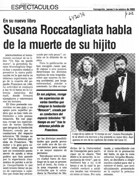 Susana Roccatagliata habla de la muerte de su hijito. [artículo]