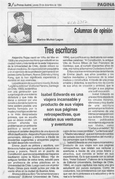 Tres escritoras [artículo] Marino Muñoz Lagos.
