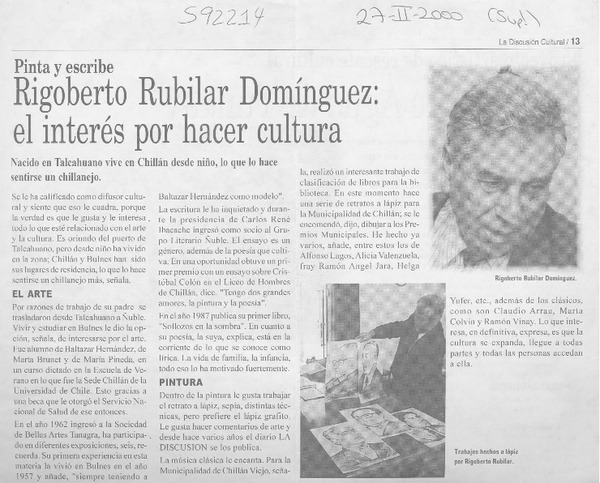 Rigoberto Rubilar Domínguez, el interés por hacer cultura [artículo]