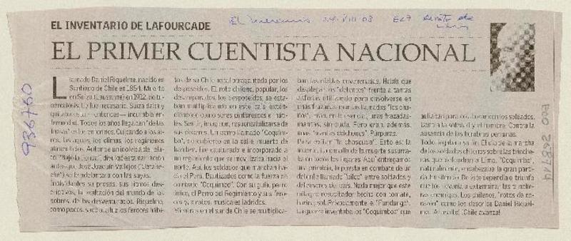 El primer cuentista nacional [artículo] Enrique Lafourcade.