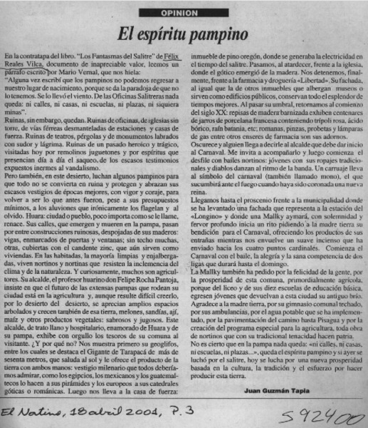 El espíritu pampino [artículo] Juan Guzmán Tapia