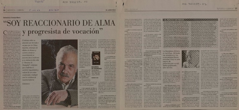 "Soy reaccionario del alma y progresista de vocación" (entrevista) [artículo] Alvaro Matus.