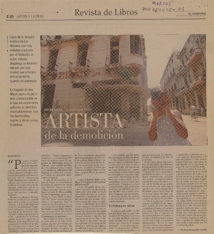 Artista de la demolición (entrevista) [artículo] Alvaro Matus.