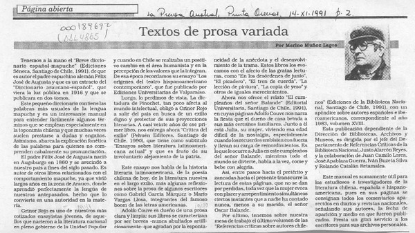 Textos de prosa variada [artículo] Marino Muñoz Lagos.