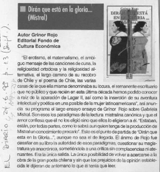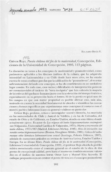 Grínor Rojo, "Poesía chilena del fin de la modernidad" [artículo] Joyce Abeliuk.