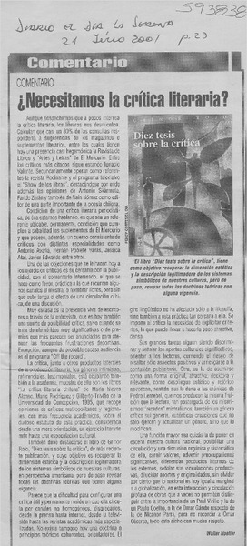 ¿Necesitamos la crítica literaria? [artículo] Walter Hoefler.