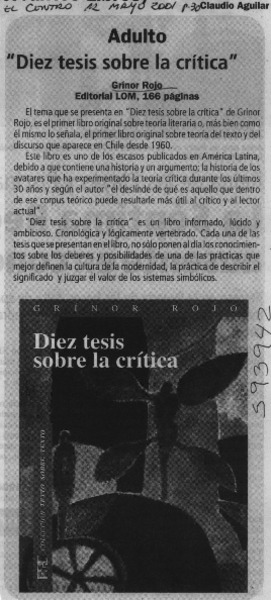 Autores chilenos - Rojo, Grínor - Diez tesis sobre la crítica