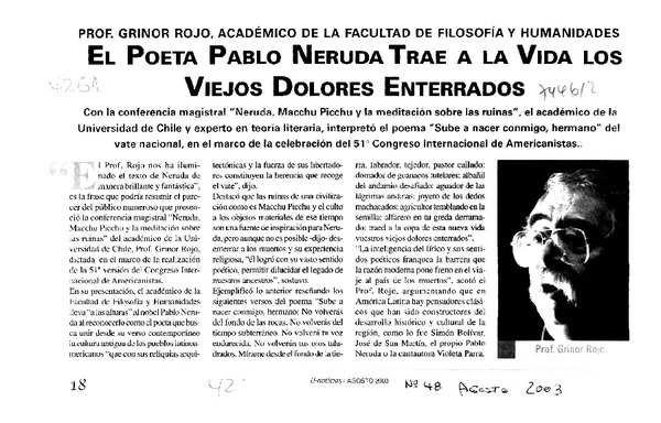 El Poeta Pablo Neruda trae a la vida los viejos dolores enterrados [artículo]