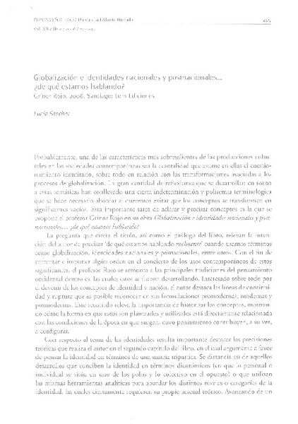 Autores chilenos - Rojo, Grínor - Globalización e identidades naconales y postnacionales... ¿de qué estamos hablando?