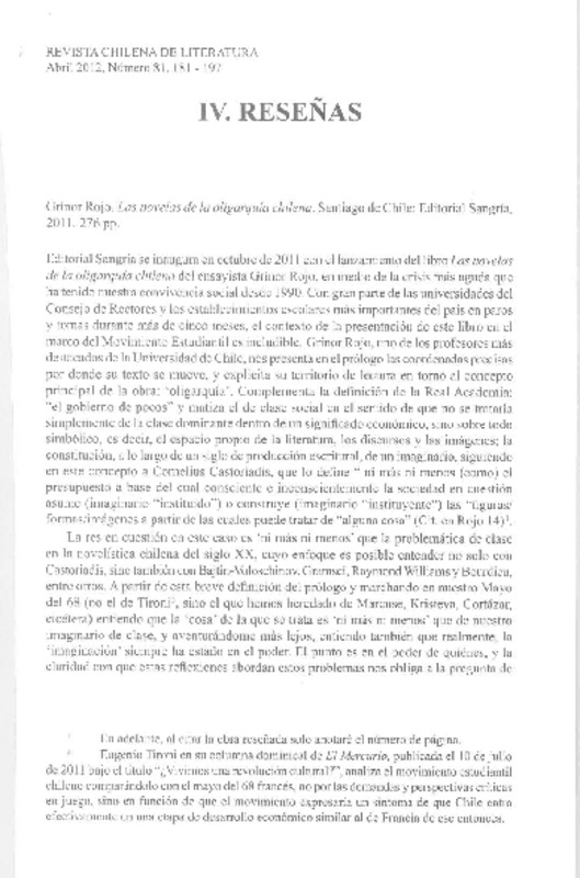 Autores chilenos - Rojo, Grínor - Novelas de la oligarquía chilena