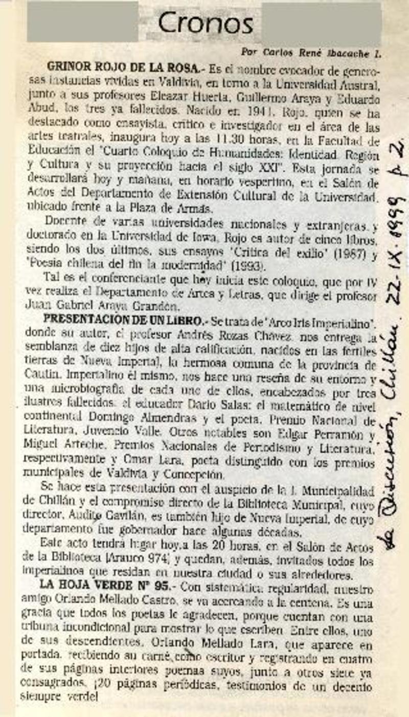 Autores chilenos - Rojo, Grínor - Rozas Chávez, Andrés - Arco Iris imperialino