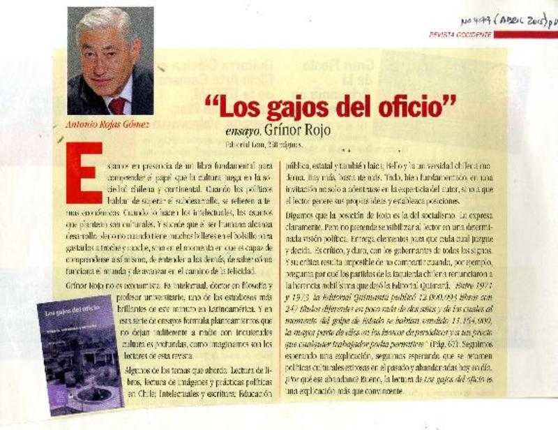 "Los gajos del oficio" [artículo] Antonio Rojas Gómez.