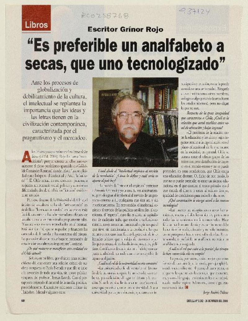 "Es preferible un analfabeto a secas, que uno tecnologizado" (entrevista) [artículo] Jorge Andrés Palma.