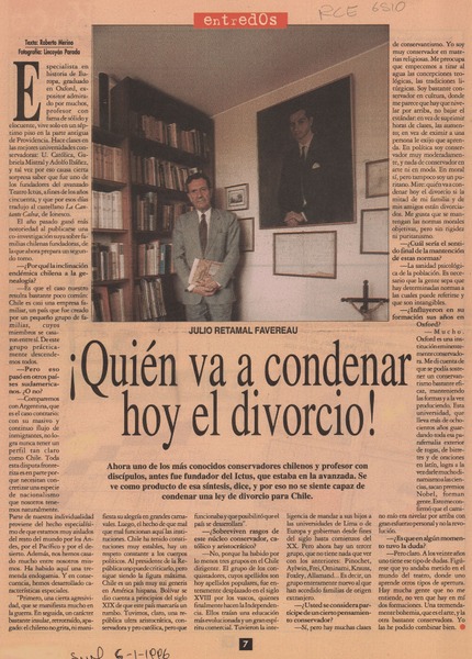 Quién va a condenar hoy el divorcio! [artículo] Roberto Merino.