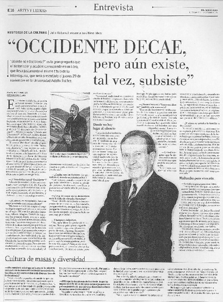 Occidente decae, pero aún existe, subsiste (entrevista) [artículo] María de los Angeles Covarrubias Claro.