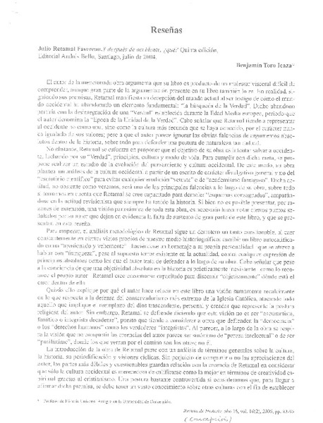 Autores chilenos - Retamal Favereau, Julio - Y después de Occidente, ¿qué?