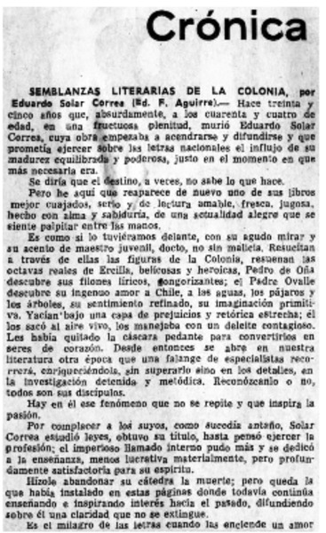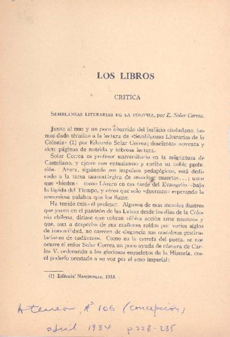 Autores chilenos - Solar Correa, Eduardo - Semblanzas literarias de la colonia
