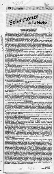 Autores chilenos - Salas, Manuel de - Solar Correa, Eduardo - Silva Castro, Raúl - Ercilla y Zúñiga, Alonso de - Araucana - Ovalle, Alonso de - Bulnes, Alfonso - Alfonso Bulnes