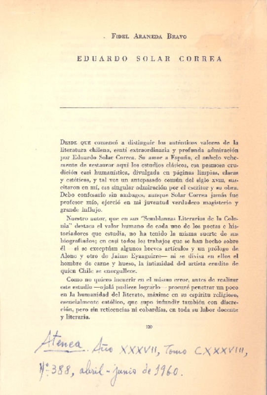 Eduardo Solar Correa [artículo] Fidel Araneda Bravo.