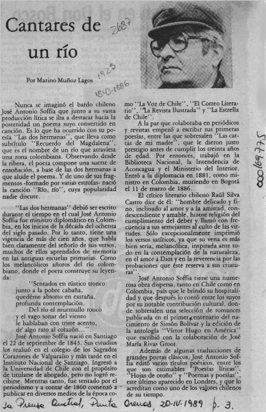 Cantares de un río [artículo] Marino Muñoz Lagos.