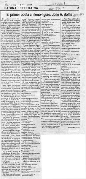 El primer poeta chileno-lígure, José A. Soffia [artículo] Pablo Massone.