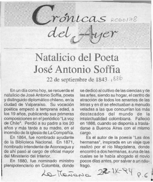 El poeta José Antonio Soffia [artículo] A. Simpson T.