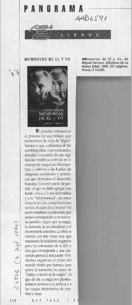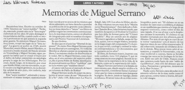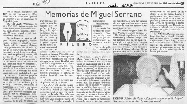 Las "Memorias" de Miguel Serrano [artículo] Filebo.