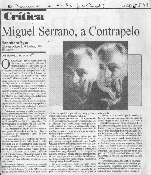 Miguel Serrano, a contrapelo [artículo] Antonio Avaria.