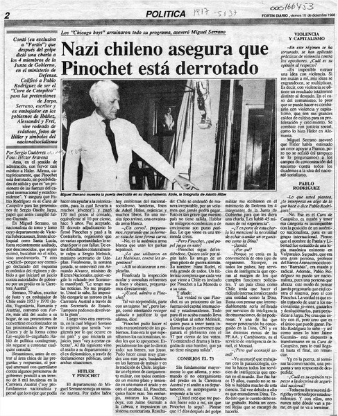 Nazi chileno asegura que Pinochet está derrotado [artículo] Sergio Gutiérrez.
